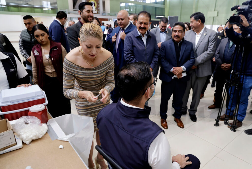 TOLUCA, Estado de México.– Para fortalecer las acciones preventivas contra el sarampión en planteles educativos del Estado de México, el Gobierno de la Maestra Delfina Gómez arrancó la campaña de vacunación dirigida al magisterio mexiquense, que contempla la aplicación de 103 mil 600 dosis.