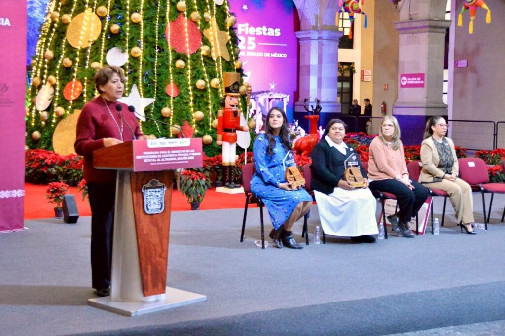 La diputada Martha Azucena Camacho Reynoso (morena), presidenta de la Directiva de la LXII Legislatura mexiquense, acompañó a la gobernadora Delfina Gómez Álvarez a la ceremonia del Programa para el Bienestar de las Instituciones de Asistencia Privada (IAP) y Premio al Altruismo 2025, celebrado en el palacio de gobierno del Estado de México, en Toluca.