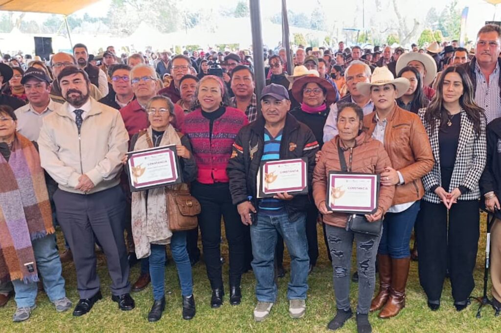 La diputada Martha Azucena Camacho Reynoso (morena), presidenta de la Directiva de la LXII Legislatura mexiquense, acompañó a María Eugenia Rojano Valdés, secretaria del Campo del gobierno estatal, a la entrega de reconocimientos y premios a las personas ganadoras del Segundo Concurso de Personas Productoras de Maíz Nativo y Amaranto del Estado de México bajo Producción Agroecológica.