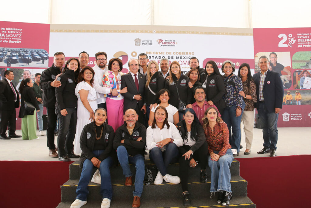 Al informe en Texcoco acudieron también diputadas y diputados federales, presidentas y presidentes municipales, integrantes del gabinete estatal, representantes del Poder Judicial y autoridades de 18 municipios de la región.