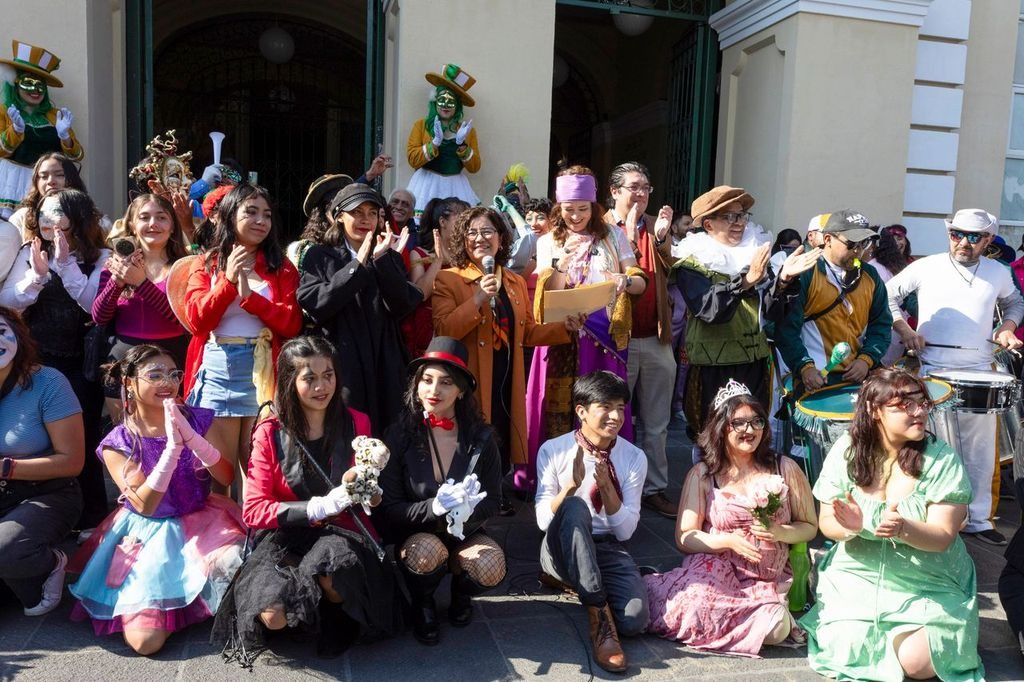 Los teatreros transformaron el espacio público en un escenario vivo, donde el teatro se manifestó como una expresión colectiva que conecta con la sociedad. La movilización reunió a integrantes de la CUT, alumnado de las licenciaturas en Artes Teatrales y Danza, así como agrupaciones de la Escuela de Bellas Artes y compañías independientes, quienes, desde sus distintas disciplinas, dieron identidad y fuerza a esta celebración.