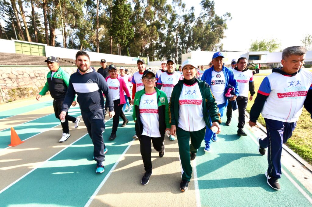 Acompañada por la secretaria general de la Federación de Asociaciones Autónomas de Personal Académico de esta casa de estudios (FAAPAUAEM), Gilda González Villaseñor, y la secretaria general del Sindicato único de Trabajadores y Empleados al servicio de la institución (SUTESUAEM), Luz María García Molina, la rectora dio el banderazo de salida y encabezó la convivencia deportiva.