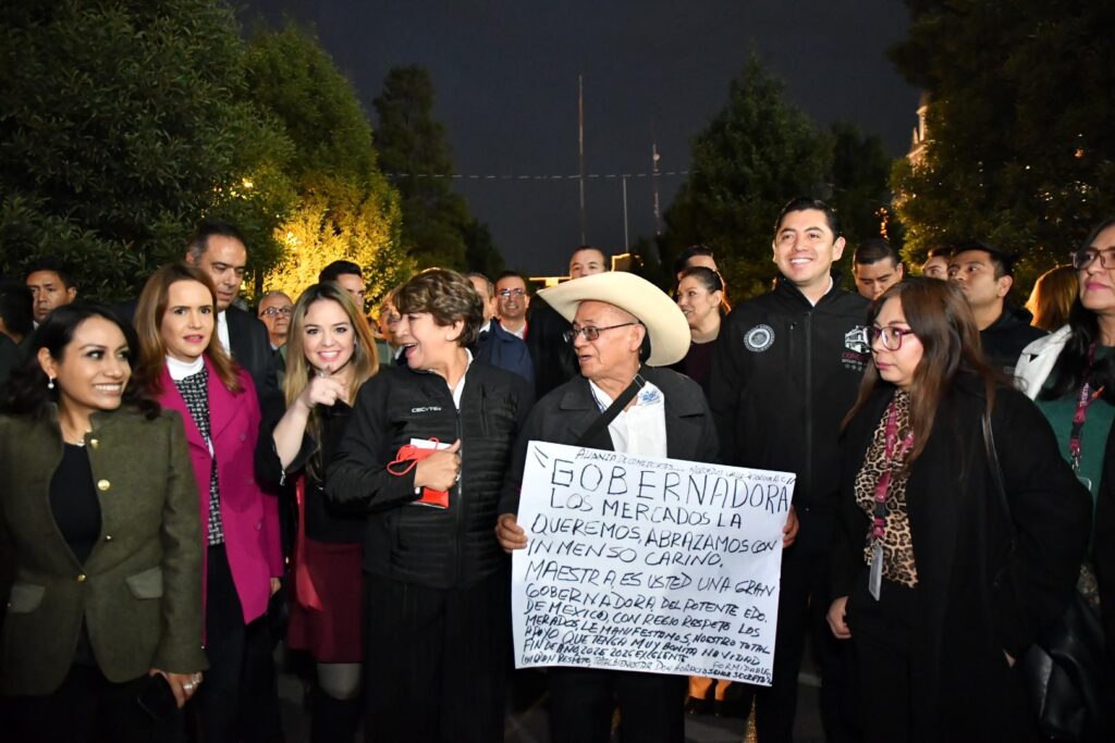 Posteriormente, el diputado Francisco Vázquez y la diputada Martha Azucena Camacho Reynoso, presidenta de la Directiva, acompañaron a la gobernadora Delfina Gómez Álvarez en el encendido del árbol navideño en Palacio de Gobierno.