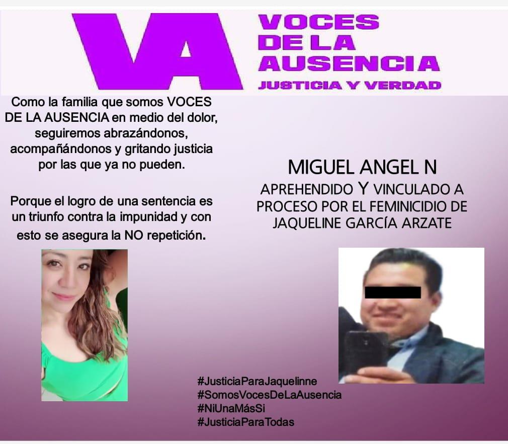 Se fue con él y ya no volvió con vida. Desde aquel momento, Miguel Ángel N huía de la justicia, y fue hasta el 31 de diciembre de 2025 que al fin, fue aprehendido en Puerto Vallarta. El 4 de enero de 2026 fue presentado ante la autoridad judicial, quien dio por legal su detención. El 6 de enero fue vinculado a proceso por el delito de feminicidio.