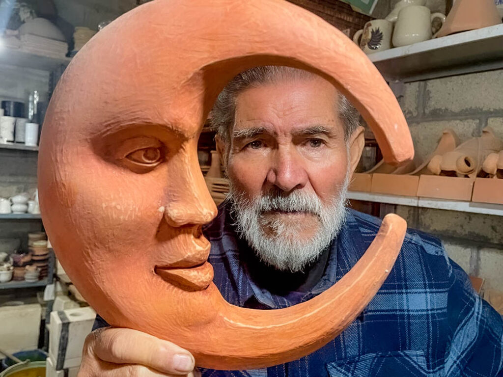 Siento que, nuestros antepasados se encontraron varias piezas… en el cerro y en el centro de Metepec. Y rascando todavía en algunas milpas, había tepalcates o algo. Después de eso, pienso que se comenzaron a hacer cazuelas, ollas, jarros. Para mí, el árbol de la vida no tiene más de 80 años. Para mí es nuevo y ver realmente el poder explotar más Metepec. Y, te puedo decir, que ahorita nos está apoyando el Presidente Municipal Fernando Flores, y ver hasta dónde podemos llegar con su apoyo. Y con la nueva directora, Elisa, lograr, catapultar más Metepec.