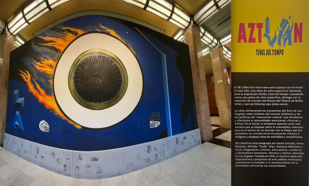 El bellísimo edificio de el Palacio de Bellas Artes alberga la exposición chicana “AztLÁn, túnel del tiempo”, auque en algunas propuestas estruenden los colores, es una muestra de arte Mexico-Americano que busca explorar la identidad, la memoria y las expresiones artísticas de la comunidad chicana. “Aztlán” se refiere al lugar mítico de origen del pueblo azteca, resignificado por la cultura chicana como un emblema de memoria histórica y afirmación cultural, haciendo referencia a los territorios que hoy forman parte del suroeste de Estados Unidos y que pertenecieron a México hasta antes del Tratado de Guadalupe Hidalgo