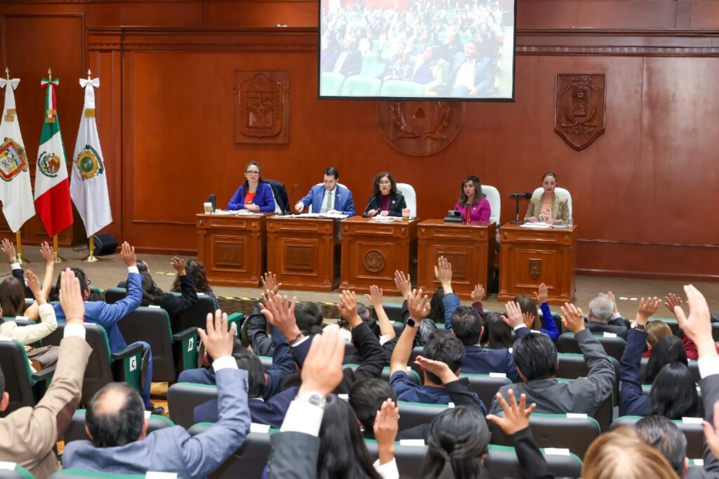 Asimismo, se presentó el dictamen de la Comisión Especial encargada de evaluar el Primer Informe Anual de Actividades de la Administración 2025-2029 de la institución, encabezada por la rectora Martha Patricia Zarza Delgado.