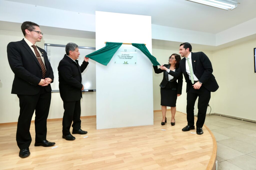 Como parte de esta celebración, se develó la placa del auditorio del CEMAFyD, que llevará como nombre “Dr. Héctor Manuel Tlatoa Ramírez”, en reconocimiento a la labor del académico universitario.