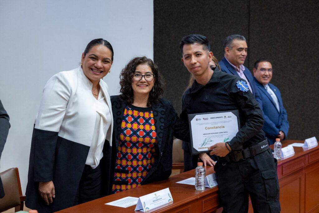 • La rectora Martha Patricia Zarza Delgado y la secretaria de Medio Ambiente y Desarrollo Sostenible, Alhely Rubio Arronis, entregaron reconocimientos y constancias del Diplomado en Línea “Herramientas para el Desarrollo Sostenible”.