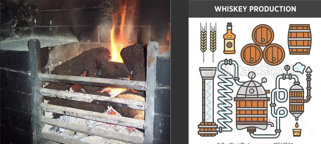 A continuación, la malta seca y tostada es molida y se mezcla con agua caliente en un tanque. El mosto, o mezcla, obtenido es similar al de una cerveza turbia, y en ese momento se le añaden las levaduras, que harán posible la fermentación. Este mosto se pasa a cubas o barriles donde se dejará fermentar tres días a 33°. De ahí se pasa a la destilación: El wash (wort fermentado) se destila dos veces, en alambiques. De la primera destilación en pot still obtendremos un llamado low wine de 25-30°, y al destilarse por segunda vez, donde se obtiene un whisky de 60°-70°.