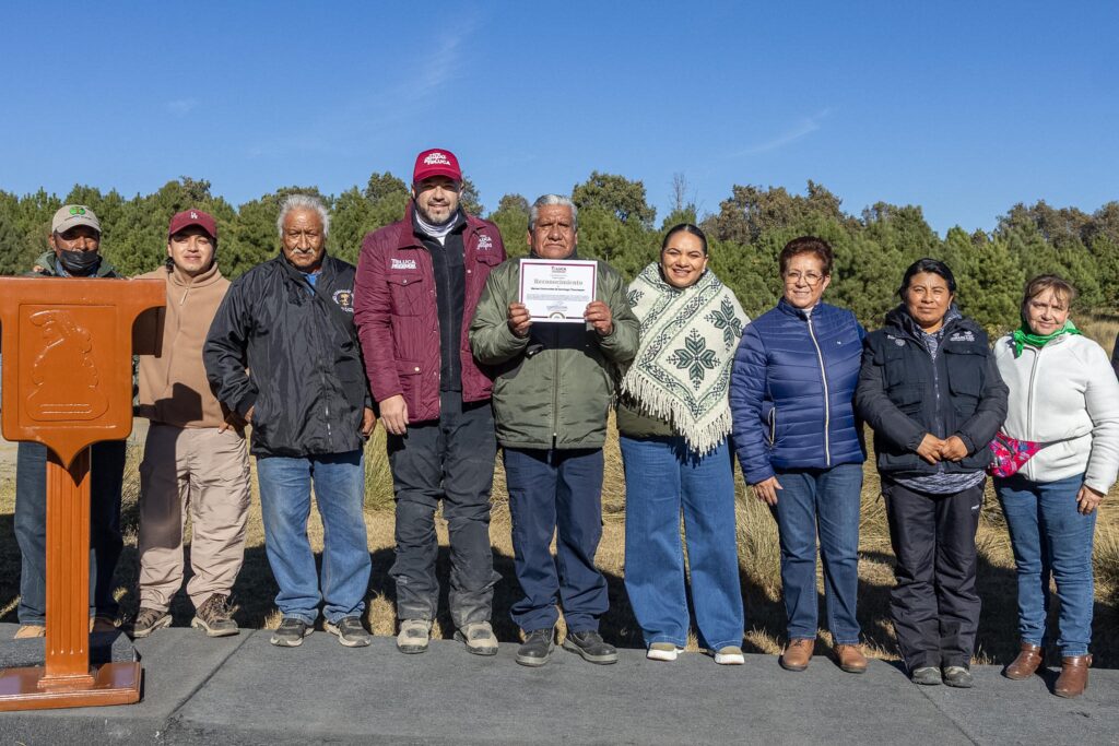 Asimismo, se entregaron reconocimientos a PROBOSQUE y a los Bienes Comunales de Santiago Tlacotepec, por su compromiso y colaboración en las acciones realizadas a favor de la protección de los bosques y del medio ambiente, así como por su valiosa participación en la prevención y combate de incendios forestales; a integrantes de las Brigadas Contra Incendios, por su esfuerzo, profesionalismo y vocación de servicio contribuyendo de manera directa a la conservación de los recursos naturales, al fortalecimiento de los ecosistemas y a la construcción de un futuro más sostenible.