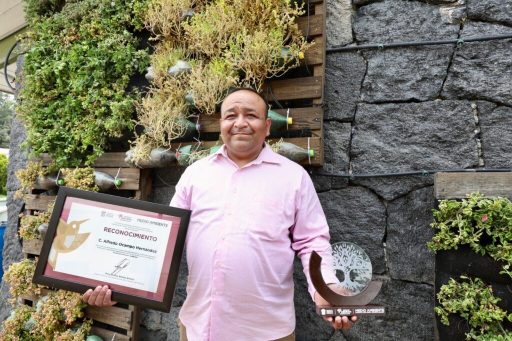 Atlacomulco, Méx. – Septiembre 5 de 2025. Alfredo Ocampo Hernández, docente y responsable del Programa de Medio Ambiente del Plantel “Isidro Fabela Alfaro” de la Escuela Preparatoria de la Universidad Autónoma del Estado de México (UAEMéx) -ubicado en el municipio de Atlacomulco-, recibió el Reconocimiento a Defensoras y Defensores Ambientales, en la categoría Académico Defensor, que entrega el Gobierno del Estado de México, a través de la Secretaría del Medio Ambiente y Desarrollo Sostenible.