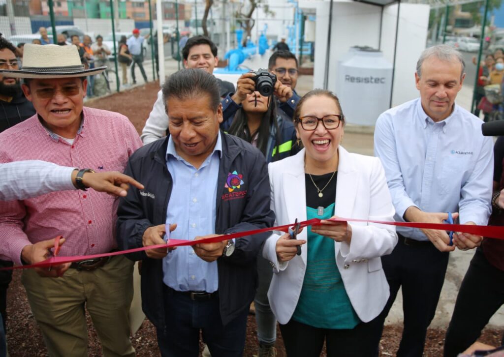 Ecatepec, Méx., a 6 de marzo del 2026. La alcaldesa Azucena Cisneros Coss puso en marcha la planta potabilizadora “Emiliano Zapata”, ubicada en la colonia Alborada de Aragón, que beneficia con agua de calidad a más de 30 mil habitantes de 10 comunidades de la Quinta Zona y cuya rehabilitación requirió inversión de alrededor de 10 millones de pesos.