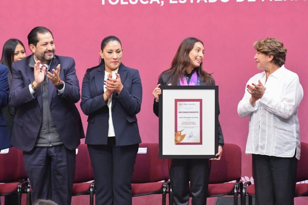 El diputado José Francisco Vázquez Rodríguez (morena), presidente de la Junta de Coordinación Política, y las legisladoras Martha Azucena Camacho Reynoso (morena), presidenta de la Directiva, y Alejandra Figueroa Adame (PVEM), presidenta de la Comisión de la Juventud y el Deporte del Congreso mexiquense, acompañaron a la gobernadora Delfina Gómez Álvarez en la entrega del Premio Estatal del Deporte 2025.