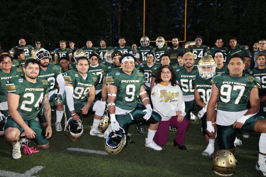 Antes del arranque del partido, la rectora de la UAEMéx, Martha Patricia Zarza Delgado, visitó al representativo universitario para desearle éxito y refrendar el apoyo de la Administración 2025-2029 al fútbol americano y a todas las disciplinas deportivas de la institución.