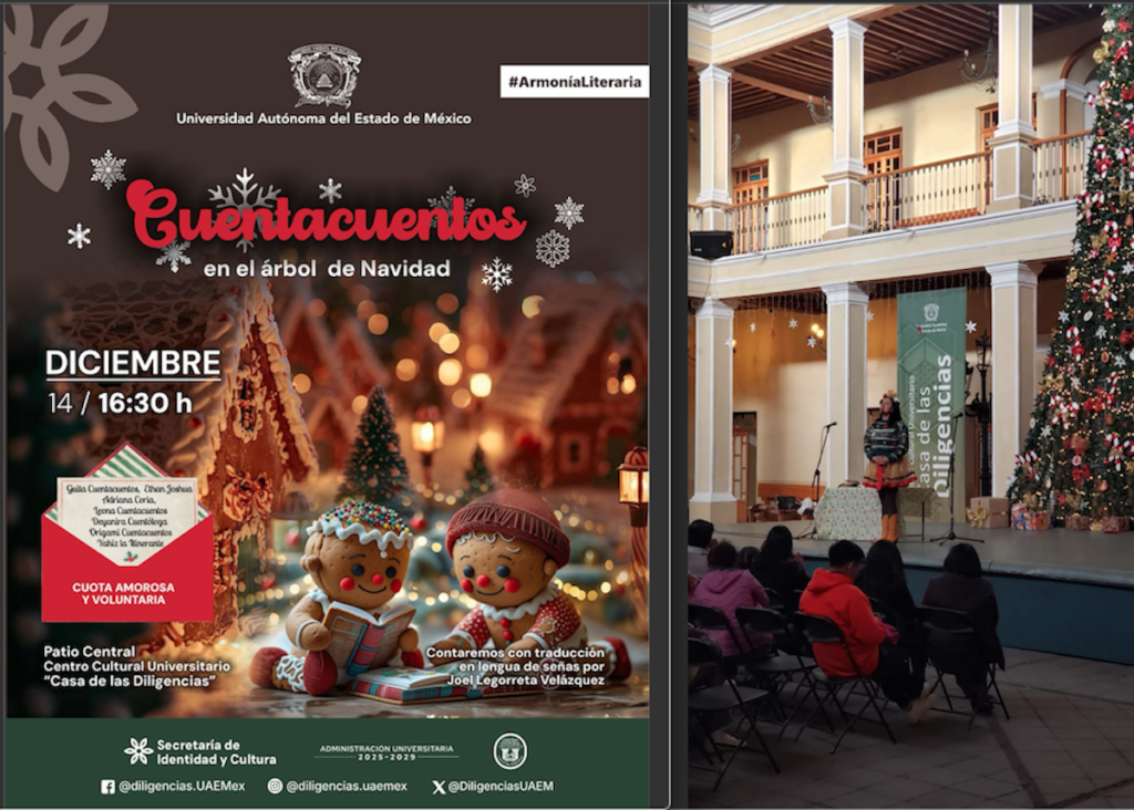 La cita es el 14 de diciembre a las 16:30 horas en el Patio Central del Centro Cultural Universitario “Casa de las Diligencias”, donde narradoras y narradores compartirán historias alusivas a la temporada navideña bajo el emblemático árbol del recinto.