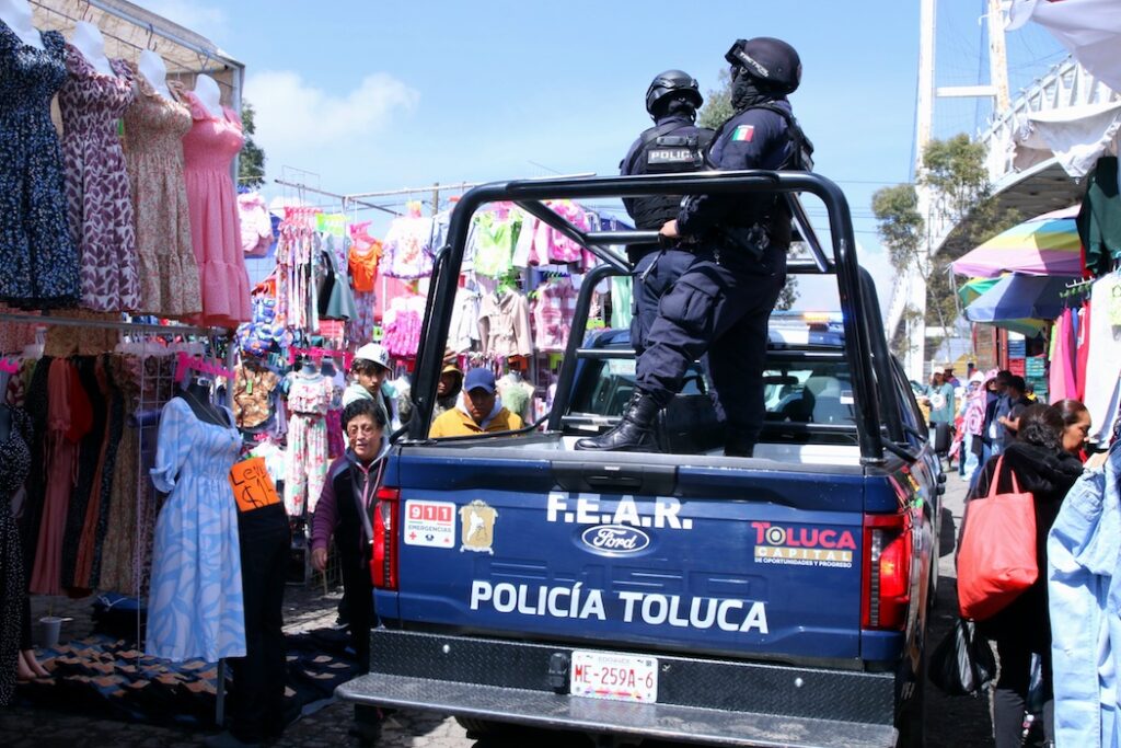 Toluca, Estado de México, 30 de mayo de 2025.- Se llevó a cabo un recorrido estratégico de inspección y vialidad en el tianguis de Aviación Palmillas y zona de hospitales con el objetivo de recuperar y mantener el orden en el espacio público para garantizar el libre tránsito tanto vehicular como peatonal.