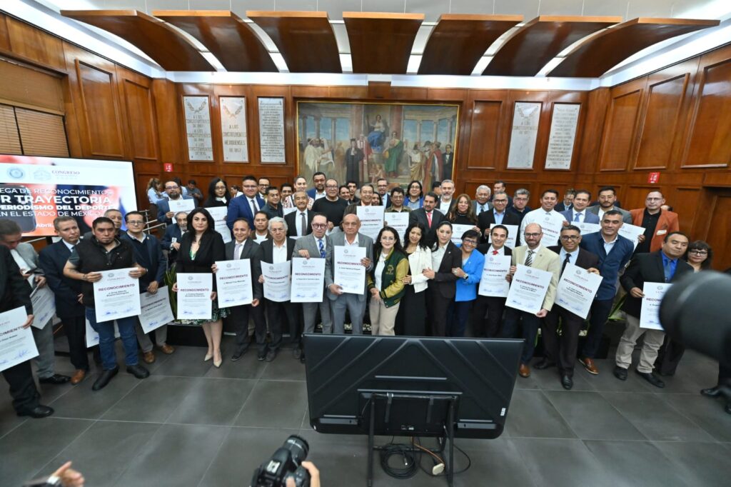 Al entregar reconocimientos a 46 periodistas deportivos, la diputada Martha Azucena Camacho Reynoso, presidenta de la Directiva de la LXII Legislatura mexiquense, y los diputados Esteban Juárez Hernández y Ernesto Santillán Ramírez coincidieron en que su labor es fundamental para la vida pública de la entidad, pues contribuyen a mantener informada a la sociedad y a fomentar la cohesión social mediante el deporte.