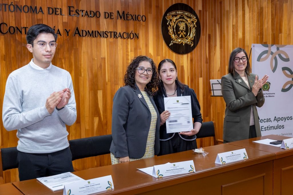 • Esta entrega, dijo, reconoce el esfuerzo diario, creatividad, disciplina y talento de sus estudiantes, quienes cuentan con el respaldo de la UAEMéx para su mejor desempeño y formación integral.