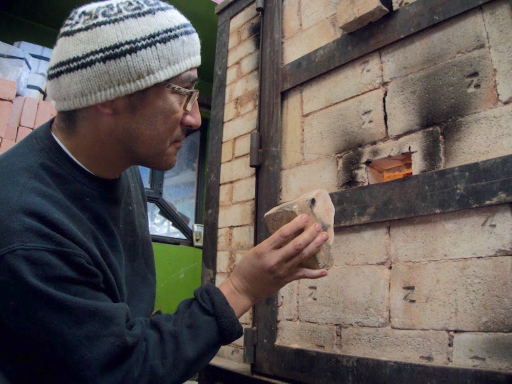 Suena muy bonito, pero, realmente no existe. Hay una escuela nacional de la cerámica, que se ha encargado de traer maestros de China, de Alemania. Ellos becan a ciertos artesanos, dos, tres artesanos, lo demás, es inscribirse, ¿no?, es lo que yo sé de esa escuela. Y ellos me becaron para poder estar en un taller de los hornos libres de humo, que es el quemado con leña, pero es libre de humo. Y estuve con ellos, de hecho se realizó aquí, en el centro artesanal, casi veinte días con ellos. Se aprende demasiado. Es lo que hace falta aquí, ese tipo de apoyos, para aprender y poder hacer mejores piezas, mejores resultados, o sea, todo es bueno.