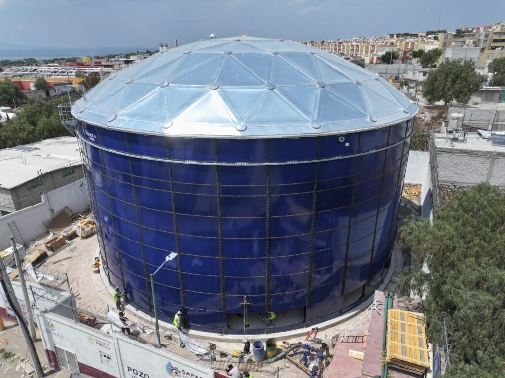 Francisco Reyes Vázquez, director del organismo de agua Sapase, dijo que el tanque es de vidrio fusionado al acero con capacidad de cinco mil 129 metros cúbicos de agua (o cinco millones 129 mil litros) y pronto será puesto en marcha para aliviar la escasez de líquido que afecta a esta región.