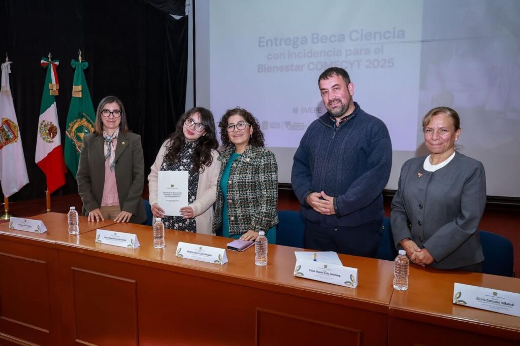 Atizapán, Méx. – 1 de diciembre de 2025. Con el objetivo de impulsar el desarrollo de la comunidad estudiantil de la Universidad Autónoma del Estado de México (UAEMéx), la rectora Martha Patricia Zarza Delgado presidió la entrega de la Beca Ciencia con Incidencia para el Bienestar 2025, otorgada en colaboración con el Consejo Mexiquense de Ciencia y Tecnología (COMECyT).