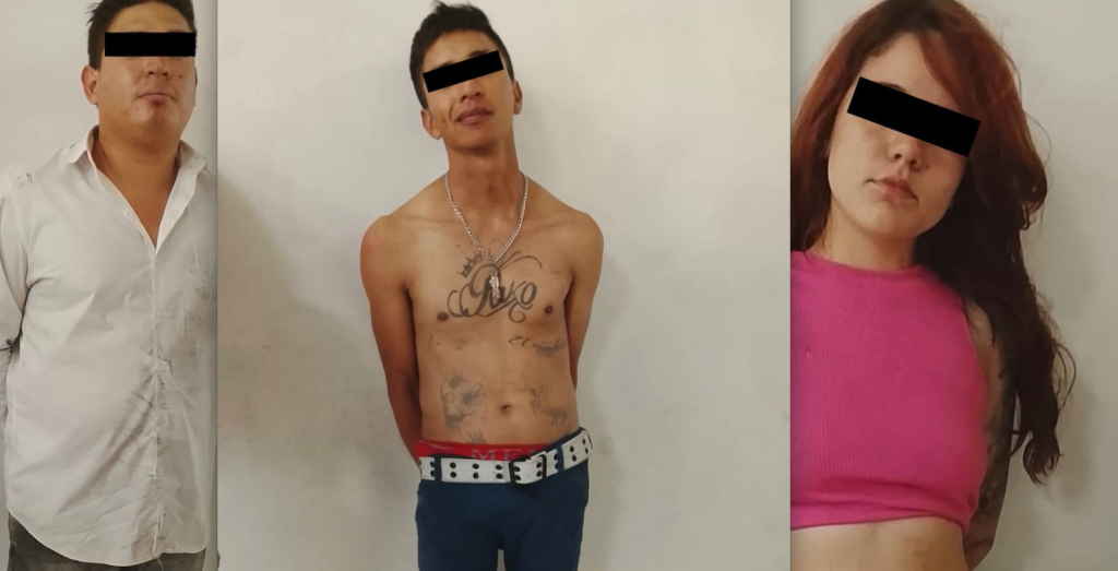 Por estos hechos fueron detenidos Jesús “N”, de 28 años de edad; Francisco Javier “N”, de 27 años, y Karla Daniela “N”, de 18 años, quienes fueron presentados ante el Ministerio Público como probables participantes de delitos contra la salud, resistencia, daño en los bienes y portación, tráfico y acopio de armas prohibidas.