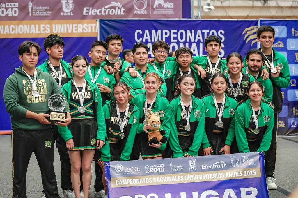Toluca Méx.- 4 de octubre de 2025. La cosecha de triunfos comenzó para la Universidad Autónoma del Estado de México (UAEMéx) en la segunda fase de los Campeonatos Nacionales Universitarios de la Asociación Nacional de Universidades e Instituciones de Educación Superior (ANUIES) 2025, al conquistar la medalla de plata en la disciplina de Porras y Animación, Categoría Mixto, Nivel 4.
