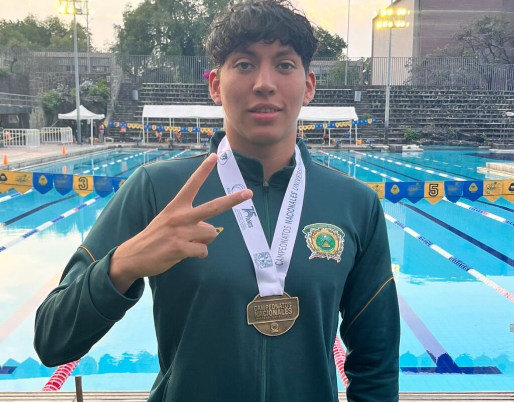 **El nadador universitario brilla en la alberca y suma su segunda medalla de la competencia.